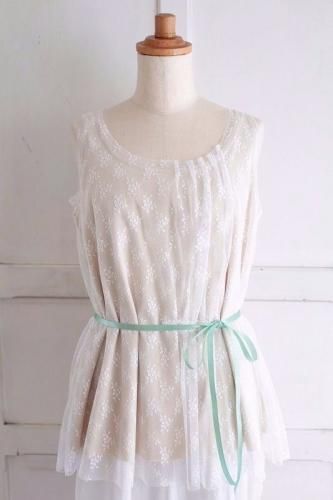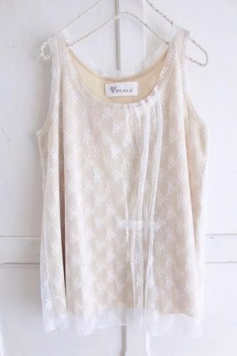 繊細な小花柄のラッセルレースの2枚仕立て。