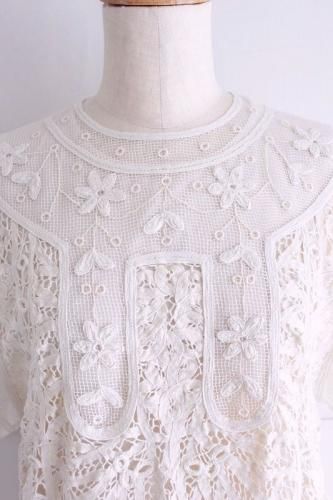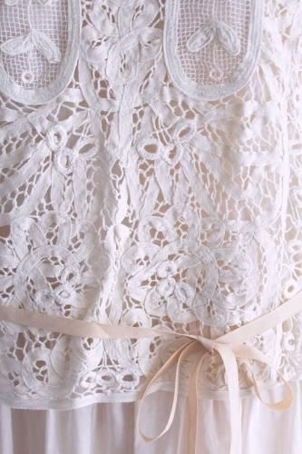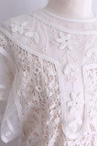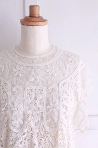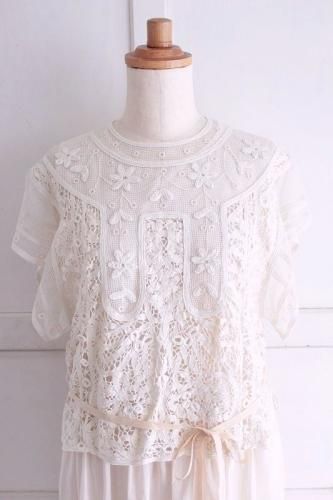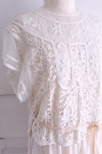 繊細な総バテンレースとネットのトップスの組み合わせ。