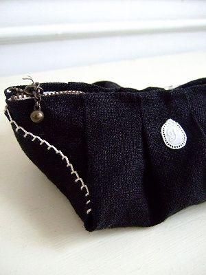 PERNOD*mignonさんオリジナルの舟型のポーチです。小ぶりでとってもかわいいかたち・デザインです。 カラー ブラック、素材 リネン、コットン、 サイズ (底)12cm×12cm、(高さ)7cm、(ファスナー)15cm※フランスアンティークレース、スイスアンティークイニシャルモチーフ使用。