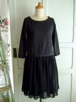 inaニット切替シフォンワンピースCC×BK