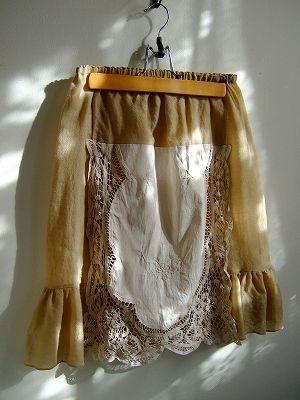 こちらはveerleより届きましたバテンレースのウールのスカートです。センターには、バテンレースで縁取られた デッドストックのクロスが縫い付けられています。 裏地は付いてないので、重ね着がおススメ。 ペチコート代わりに、ワンピースやスカートの裾から レースを覗かせても素敵です。 いろいろなアレンジが楽しめる1枚です。 color アイボリー、ベージュ、1点1点手染めの為、多少お色が異なります。ご了承下さいませ。素材wool100%、レース別布部分cotto100%、made in JAPAN、size フリー、着丈 52cm、ウエスト60cm(ゴムが入っております)※こちらの製品は手刺繍、手編み、デッドストックのハンカチやクロスを使用したリメイク商品です。多少の傷や汚れはご了承下さいませ。製品洗い仕上げをしておりますが、お取り扱いはやさしく手洗い後タオルドライ陰干し、またはドライクリーニングに出されることをお勧め致します。 デッドストックのハンカチの刺繍やレース編みのデザイン等お写真の物とは多少異なる場合がございます。予めご了承下さいませ。
