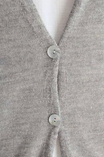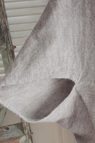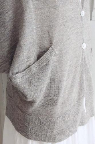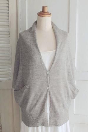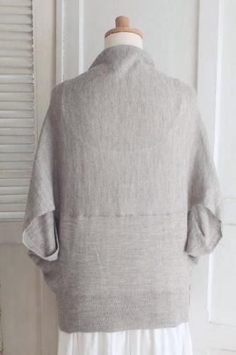 color グレー(ミックス) 素材 アルパカ65%、リネン35% made in China size M 着丈51cm(フロント57cm)、バスト フリー 袖丈(着用時)約16〜19cm、肩幅38cm