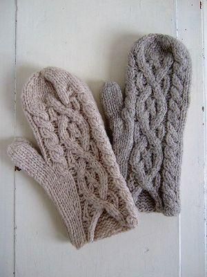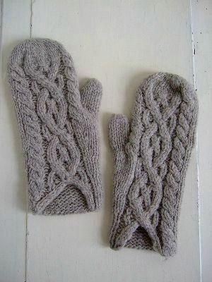 こちらはケーブル編みの どこか懐かしい手袋です。 素朴な雰囲気がとっても素敵です。 どんな色にも合わせやすいのもおすすめ!