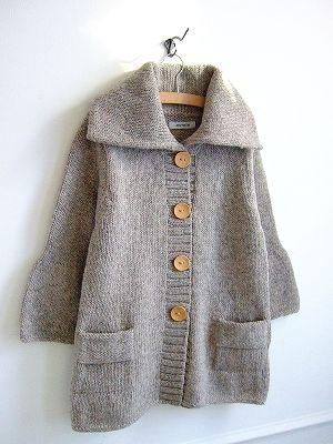 こちらは素朴な雰囲気が素敵なニットのロングカーディガンです。大きめの襟とちょっぴり広がるお袖がポイントです。 どんなコーディネートにも合わせやすいお色のカーディガンです。