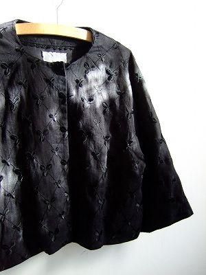 こちらはhaupiaより届きました 刺繍ジャケットです。 シーズン落ちの為 いきなりのSaleプライスです。 光沢のある糸で施した刺繍は お花のようなクローバーのようなデザイン。 ノーカラーですっきりとしたシルエットです。 裏地にはレースやドットの生地を 使用し、細部にまでこだわりを感じます。 フォーマルにもカジュアルにも使える 素敵なジャケットです。
