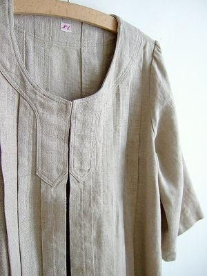 color ナチュラル、素材 linen100%、made in JAPAN、size F、着丈91cm、バスト92cm、袖丈40cm、肩幅 38cm ※裏地は付いておりません。