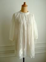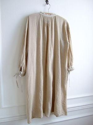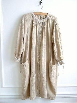 こちらは一足早くnesessaireより届きました2009Spring新作ワンピースです。胸元と背中・袖に手作業で施したタック。首周りとフロント袖口にははしごレース。ひじの辺りで袖口のリボンを結ぶとバルーン袖のようなボリュームのある袖が出来上がります。洗いざらしのようなしわくしゃ感も素敵です。インナーにはレースのぺチスカートを合わせたり、ボタンをはずしてコートのように・・・いろいろなコーディネートが楽しめる素敵なワンピースです。