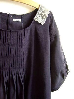 color ネイビー、素材 linen55%、silk45%、(レース部分)ナイロン60%、レーヨン30%、コットン10% 、made in CHAINA、size M、着丈53cm、バスト104cm、袖丈30cm、肩幅 39cm※カットソーは付属致しません