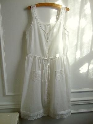 color ホワイト、素材 コットン100% 、レース部分 コットン90%、ナイロン10%、made in CHINA、size M、着丈 104cm、バスト90cm ※裏地は付いておりません。