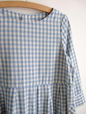 color ブルー、素材 コットン52%、レーヨン48%、made in CHAINA、size M、着丈89cm、バスト96cm、袖丈45cm、肩幅 39cm