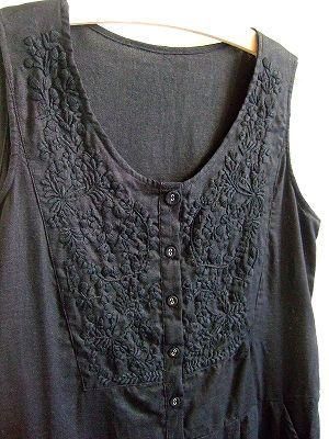 こちらは一足早くnesessaireより届きました2009Spring新作ワンピースです。胸元には生地と同色の糸で花の手刺繍を施しとっても上品な仕上がりに!!フロントには2本のタックが入りフレアースカートのようなシルエット。おまけにポケットも付いています。洗いざらしのしわくちゃ感も素敵。 春先はインナーに長袖のカットソーを夏はノースリーブで・・・使う程に表情が変わっていく様子を楽しみながら長く着て頂きたい素敵なワンピースです。crochet一押しです!!