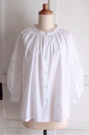 color ホワイト 素材 コットン100% (レース)ポリエステル100% made in China size M 着丈68cm(フロント59cm)、バスト115cm 袖丈48cm、肩幅38cm ※袖口周りにはゴムが入っております。