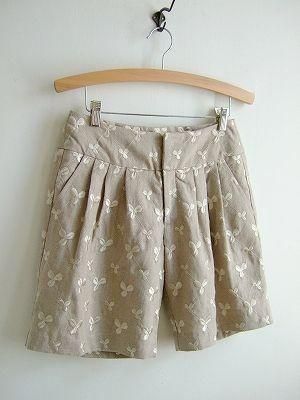 こちらはhaupiaより届きました刺繍のショートパンツです。シーズン落ちの為いきなりのSaleプライスです。光沢のある糸で施した刺繍はお花のようなクローバーのようなデザイン。タックが入りふわっとかわいらしいシルエットです。