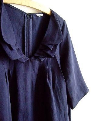 こちらは一足早くhaupiaより届きました2009Spring新作ワンピースです。なんと言っても「襟」がポイント!折り重ねボリュームのあるちょっぴり変わったデザインに。胸元と肩にはタックが入っています。おまけにポケット付き。シルクのテロッとした素材感も素敵です。インナーに長袖のカットソーを合わせたりまたパンツ・レギンスとの相性も◎いろいろなコーディネートが楽しめそうな素敵なワンピースです。