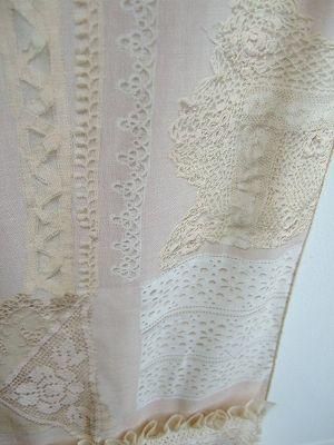 こちらは一足早くnesessaireさんより届きました2009春の新作のレースショールです。全体にいろいろな種類の繊細なアンティークレースが転写プリントされています。切りっぱなしで縫い付けられたレースのコラージュも素敵です!肌になじむやさしい色。肩に掛けたり、首にぐるっと巻いたり・・・どんなスタイルにもさらっと使える1枚です。