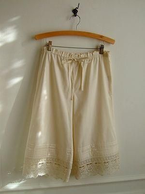 こちらはyanganyより届きましたレースのぺチパンツです。裾には幅広の素敵なコットンレースとタックも入っています。どんなお色にも合わせやすいやさしいアイボリー。ウエストはゴムとヒモで調節が可能です。薄手のワンピやリネンのワンピと合わせて。春に必ず1枚は持っていたいアイテムです。color アイボリー、素材 cotton100%(レース)cotton100%、made in JAPAN、size 38、着丈68cm、ウエスト72cm(調節可能) ヒップ98cm、※裏地は付いておりません。