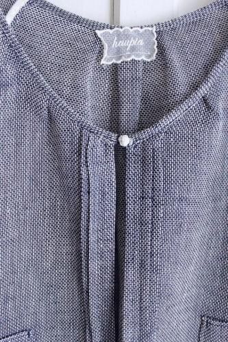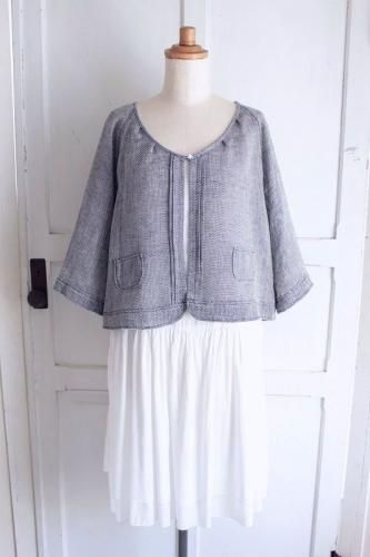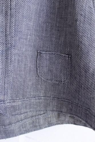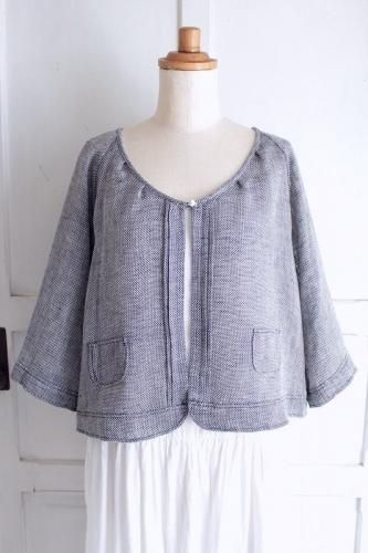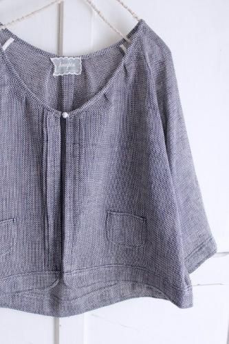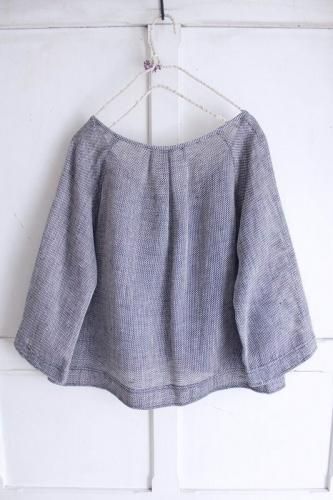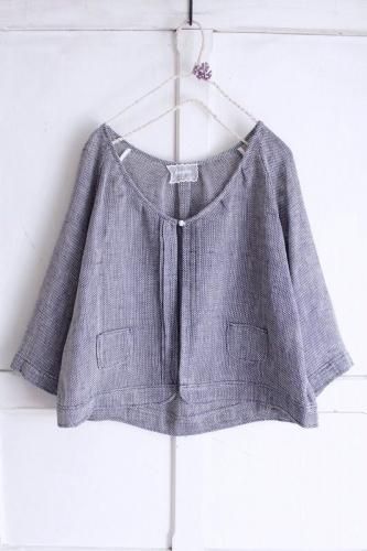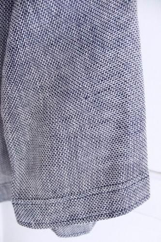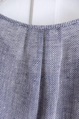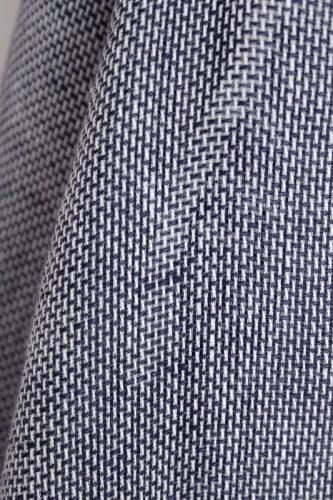 ネイビーとオフの2色の糸で格子に織り上げられた