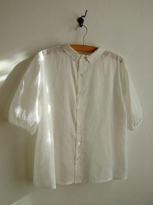 こちらは一足早くnesessaireより届きました2009Spring新作ブラウスです。胸元には繊細なチュールレースとタックモチーフのパッチワーク。とっても手が込んでいます。小さく控えめなまる襟。ふわっとまるみのある袖。そして背中ボタン。どこをとっても素敵です!薄手でさらっとしたコットン素材の素敵なブラウスです。color オフホワイト、素材 cotton100%、made in CHINA、size F、着丈54cm、バスト95cm、肩幅 38cm、袖丈30cm※裏地は付いておりません。