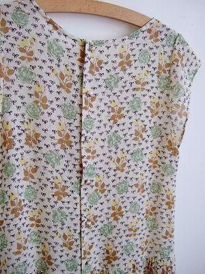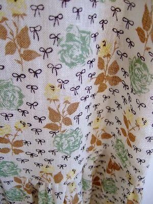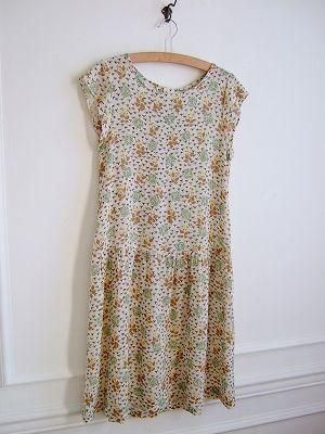 こちらは一足早くnesessaireより届きました2009Spring新作ワンピースです。グリーンとイエローローズに小さなリボンがいっぱいのかわいいプリント。フレンチスリーブに背中ボタン。ローウエストのすっきりとしたシルエット。腰につけたリボンのブローチは取り外し可能!さらっと爽やかな素敵なワンピースです。color オフホワイト、グリーン、イエロー、ブラック、素材 レーヨン70%、コットン30%、made in JAPAN、size F、着丈96cm、バスト88cm、ウエスト90cm、肩幅 38cm、袖丈8cm ※裏地は付いておりません。