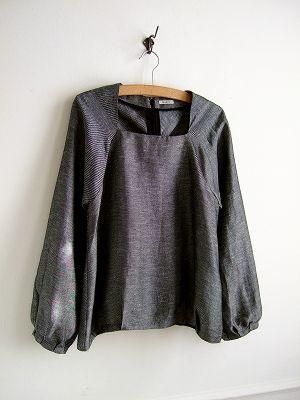 こちらは一足早くhaupiaより届きました2009Spring新作ブラウスです。ちょっぴり光沢感のあるしましま模様の生地。スクエアネックで首周りもすっきりです。