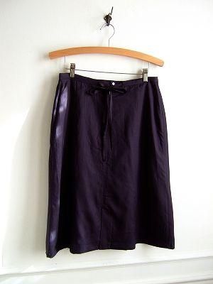 こちらはhaupiaより届きましたシンプルな無地のスカートです。シーズン落ちの為いきなりのSaleプライス。ちょっぴり光沢のあるさらっとテロッとした生地で歩くたびに風に揺れます。立体的なまるみのある小さめポケットと後ろのリボンでかわいさをプラス。 リボンを絞ってウエストの調整が可能です。Aラインで履いた時のシルエットがとてもきれいな素敵なスカートです。color ネイビー、素材 コットン50%、レーヨン50%、裏地 ポリエステル100%、made in CHINA、size M、着丈 67cm、ウエスト74cm、ヒップ100cm