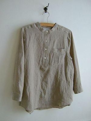 こちらは一足早くmao madeより届きました春の新作シャツです。初めて見たときその素材感に一目惚れでした。さらっと肌触りの良いベルギーリネン。ノーカラーのすっきりとしたデザイン。ちょっぴり短めの袖が腕をきれいに見せてくれます。お洗濯後、アイロンをかけずにしわくちゃっとした感じで着てもとっても素敵です。大切に長く着たい1枚です。color ナチュラル、素材 Linen100%、made in JAPAN、size M、着丈62cm、バスト100%、袖丈47cm、肩幅 38cm