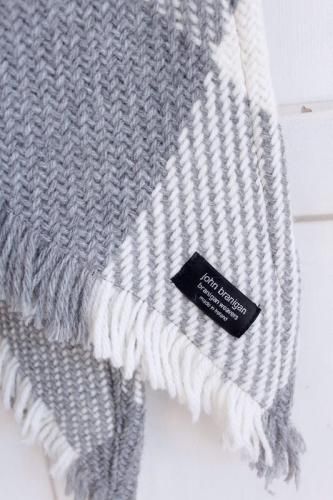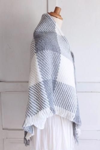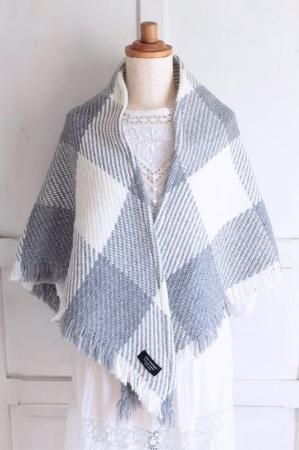 color グレー×オフホワイト 素材 ウール70%、混合繊維30% made in Ireland size 170×(長さ)74cm(+フリンジ4cm) ※ミシンの縫い目部分が直線ではなく 少々歪んでいる場合がございます。 予めご了承くださいませ。