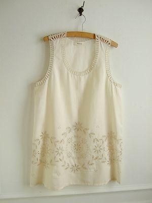 こちらはd'un a dixより届きました2009Spring新作チュニックです。至る所に施されたカットワーク刺繍が見事です。首周りとアームホールにははしご刺繍。