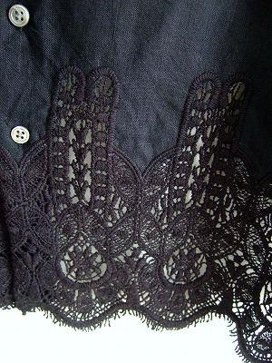 color ブラック、素材 リネン60%、コットン40%、レース部分 コットン100%、made in CHINA、size 38、着丈63cm、バスト86cm、肩幅 38cm、袖丈39cm※裏地は付いておりません。