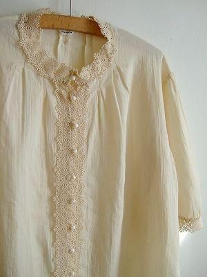 こちらはhaupiaより届きましたレースがとっても素敵なブラウスです。シーズン落ちの為いきなりのSaleプライスです。ふわっと、ちょっぴりボリュームのある袖と首周り、フロントには贅沢にレースが使われています。パンツにもスカートにも合う素敵なブラウスです。color ベージュ、(レース部分)ベージュ、素材 cotton 91%、wool 9%、(レース)cotton100%、made in CHAINA、size M、着丈55cm、バスト108cm、袖丈32cm、肩幅 38cm
