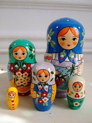 素材 木製、size 直径7cm×15cm(一番大きいマト)、入れ子5コセット、made in Russia ※1点1点ハンドペイントの為、表情が多少異なる場合がございます。予めご了承下さいませ。