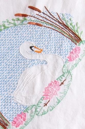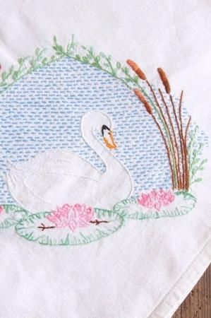 こちらは湖に浮かぶ白鳥の刺繍が
