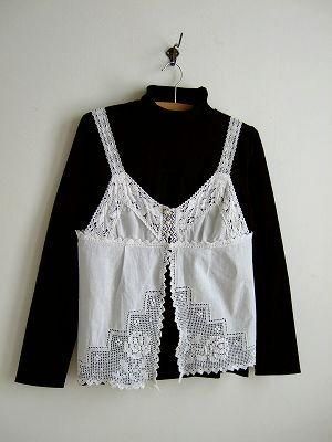 こちらはveerleより届きましたレースいっぱいのキャミソールです。以前、人気ですぐに完売してしまったデザインのキャミソールを再生産して頂きました。肩ひも、胸元、裾、と至るとこにレースが使われています。ローズの透かし編みも素敵です。インナーには長袖カットソー、タートルや半袖Tシャツなどを合わせて。またインナーの色でガラッと雰囲気も変わるので、いろいろなコーディネートが楽しめる1枚です。ボトムにはデニム、シンプルなスカートがお勧めです。colorホワイト、素材 コットン100%、size 着丈53cm、バスト78〜90cm(背中にゴムが入っています)、肩幅38cm