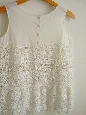 こちらはd'un a dixさんより届きました春夏の新作ブラウスです。4種類の繊細なコットンレースがパッチワークされた素敵なブラウスです。ノーカラー・ノースリーブのすっきりとしたデザイン。ちょっぴり長めの丈がゆるやかなAラインのシルエット。背中ボタンがとってもかわいらしい印象です。またインナーの色によって印象もがらっと変わります。ボトムはパンツ・スカートどちらも◎とにかく爽やかで素敵なブラウスです!!color オフホワイト、素材 コットン100%、made in CHINA 、size 38、着丈65cm、バスト92cm、ウエスト104cm、肩幅 38cm、※裏地は付いておりません
