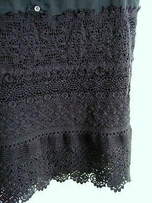 こちらはd'un a dixさんより届きました春夏の新作ブラウスです。4種類の繊細なコットンレースがパッチワークされた素敵なブラウスです。ノーカラー・ノースリーブのすっきりとしたデザイン。ちょっぴり長めの丈がゆるやかなAラインのシルエット。背中ボタンがとってもかわいらしい印象です。またインナーの色によって印象もがらっと変わります。ボトムはパンツ・スカートどちらも◎シックで大人かわいい素敵なブラウスです!!color ブラック、素材 コットン100%、made in CHINA 、size 38、着丈65cm、バスト92cm、ウエスト104cm、肩幅 38cm、※裏地は付いておりません