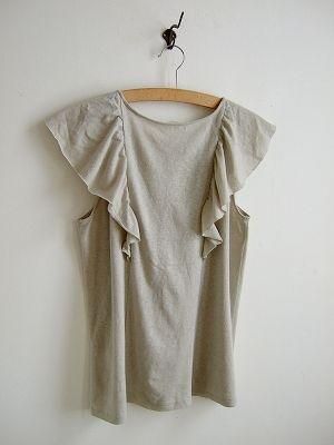 こちらはhaupiaより届きました2009Spring新作カットソーです。切りっぱなしのひらひらフレンチ袖が歩くたびに風に揺れとっても素敵です。背中のフリルはまるで天使の羽のよう・・・胸元のケミカルレースとタックもポイントです。さらっと柔らかく肌にやさしい