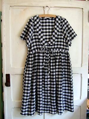 こちらはnesessaireさんより届きました春の新作ワンピースです。広く開いた胸元に丸襟。ギャザーがたっぷり入ったゆったりとかわいいシルエット。ひもをぎゅっと絞ってギャザーの調整が可能です。インナーにはレースのキャミソールや長袖のカットソーを重ねても◎ボトムにはレギンスやレースのペチコート・ペチパンツを・・・いろいろなコーディネートが楽しめる永遠にかわいいギンガムチェックの素敵なワンピースです。color ブラック×オフホワイト、素材 レーヨン51%、コットン33%、リネン16%、made in JAPAN、size F、着丈100cm、バスト95cm、肩幅 38cm、袖丈23cm※裏地は付いておりません color ブラック×オフホワイト、素材 レーヨン51%、コットン33%、リネン16%、made in JAPAN、size F、着丈100cm、バスト95cm、肩幅 38cm、袖丈23cm※裏地は付いておりません