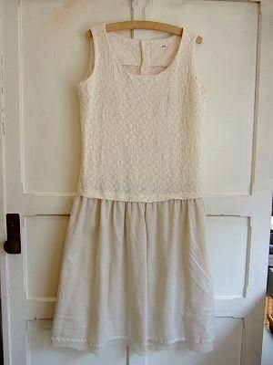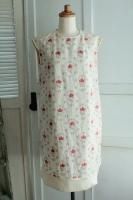 こちらはnesessaireさんより届きました春の新作ワンピースです。シンプルできれいなシルエットのワンピースにはこだわりがいっぱいです。トップはアイボリーのやさしい色。同色の糸で上品なお花の刺繍が施してあります。背中ボタンがとってもかわいらしい印象です。スカート部分はガーゼが2枚重ねに・・・裾は生成りの生地が切りっぱなしになっています。レギンスやデニムを合わせても◎とっても手の込んだナチュラルな雰囲気の素敵なワンピースです。