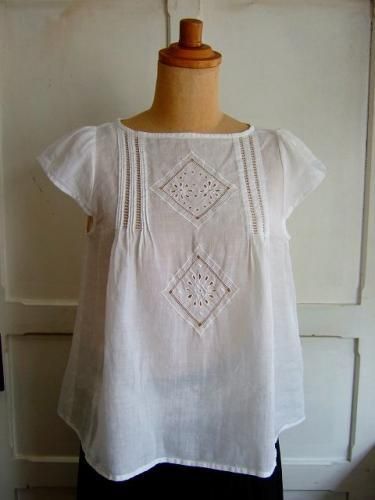 こちらはnesessaireさんより届きました新作ブラウスです。胸元にはカットワーク刺繍を施したモチーフと細かいタックが入っています。フレンチスリーブで緩やかなAラインのかわいいシルエット。背中ボタンもポイントです。インナーには長袖を重ねても◎ボトムはすっきりとしたものがお勧めです。手仕事の感じられるとっても素敵なブラウスです。color オフホワイト、素材 リネン100%、made in CHINA F、着丈55cm、バスト95cm、肩幅 38cm、袖丈10cm