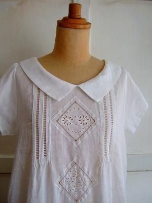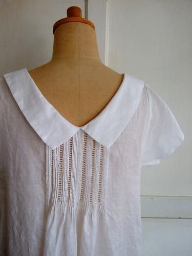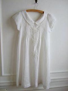 こちらはnesessaireさんより届きました新作ワンピースです。胸元にはカットワーク刺繍を施したモチーフと細かいタックが入っています。フレンチスリーブで緩やかなAラインのすっきりシルエット。Vネックで前後についた襟と背中のタックもポイントです。インナーには長袖を重ねても◎レギンスやパンツ、ペチコートを重ねて・・・手仕事の感じられるとっても素敵なワンピースです。color オフホワイト、素材 リネン100%、made in CHINA F、着丈97cm、バスト94cm、肩幅 38cm、袖丈12cm、※裏地は付いておりません。
