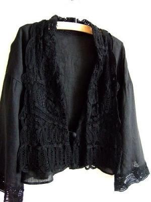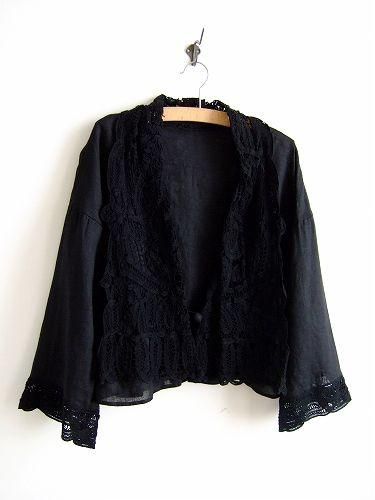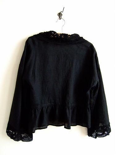 color ブラック、素材 リネン100%、(バテンレース部分 コットン100%) made in CHINA、 size F、着丈50cm、バスト98cm 袖丈52cm、肩幅38cm※裏地は付いておりません。