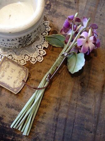こちらは作家Te・Teさんが手作業で制作して下さいました素敵なコサージュです。1点1点生地をカットし、それから手染め・ペイントをしお花に・・・。バッグに付けたり、ガラス瓶に入れてお部屋のインテリアに。color パープル、グリーン、素材 コットン、made in JAPAN、size 全長14cm