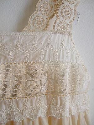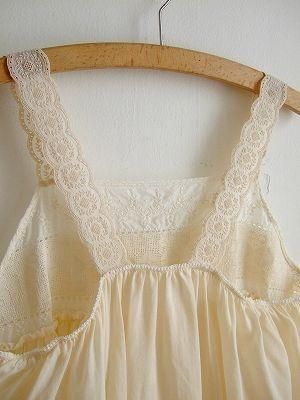 color アイボリー、素材 コットン100%、made in JAPAN、size F、着丈88cm、バスト86〜115cm(背中にゴムが入っています)、肩幅 38cm、※裏地は付いておりません、こちらはフランス製の生地とレースを使用しています。非常にデリケートな為、目寄れやひっかかりなどには十分ご注意くださいませ。
