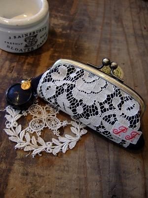 カラー ブラック、アイボリー、素材 リネン、コットン、合皮、サイズ 6.8×11.5cm※リトアニアリネン、ドイツアンティークイニシャルテープ、フランスアンティークレース、ヴィンテージチャーム、チェコグラスパール使用