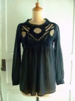 こちらはhaupiaさんより届きました新作ブラウスです。袖のレースモチーフに袖口周りの水玉レース。背中の控えめリボンとこだわりいっぱいの素敵なブラウスです。インナーにタートルや長袖カットソーなどを重ねても◎。オールシーズン着て頂ける素敵なブラウスです。