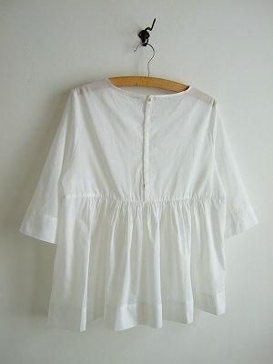 color オフホワイト、素材 コットン100%、made in CHINA、size 38、着丈59cm、バスト94cm、袖丈25cm、肩幅38cm、※背中にボタンがひとつ+スナップボタン4つ付いております