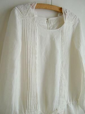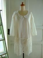 color オフホワイト、素材 リネン100%、(レース部分)コットン100%、(裏地)ポリエステル100%、made in CHINA、size 38、着丈103cm、バスト96cm、袖丈58cm、肩幅38cm