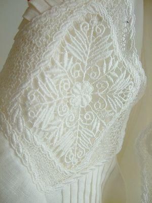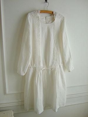 こちらはhaupiaさんより届きました新作ワンピースです。肩のレースモチーフとフロント・バック・袖口周りに施されたタックがポイントです。ローウエストのリボンでギャザーの調節も可能です。爽やかでとっても素敵なワンピースです。