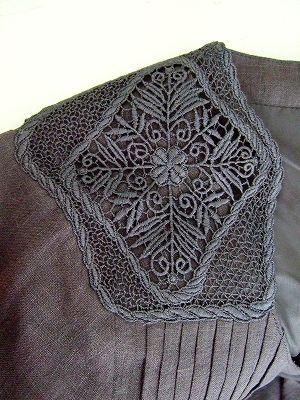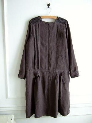 こちらはhaupiaさんより届きました新作ワンピースです。肩のレースモチーフとフロント・バック・袖口周りに施されたタックがポイントです。ローウエストのリボンでギャザーの調節も可能です。爽やかでとっても素敵なワンピースです。 color グレー(ブラウンに近いお色です)、素材 リネン100%、(レース部分)コットン100%、(裏地)ポリエステル100%、made in CHINA、size 38、着丈103cm、バスト96cm、袖丈58cm、肩幅38cm