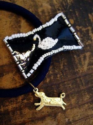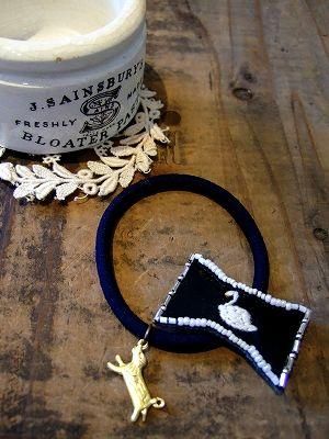 こちらはhaupiaさんより届きました新作アクセサリーのスワン刺繍ヘアゴムです。ロシアからの渡り鳥をテーマにしたコレクションのシリーズです。黒いリボン型のエナメルのふちにはビーズ。真ん中にスワンの手刺繍が施されています。haupiaさんオリジナルのイヌのチャームも◎。手仕事の感じられるとっても素敵なヘアゴムです。 color ホワイト、ブラック、ゴールド、素材 エナメル、アクリル、真鍮、made in CHINA、size (モチーフ)2.5×3.8cm